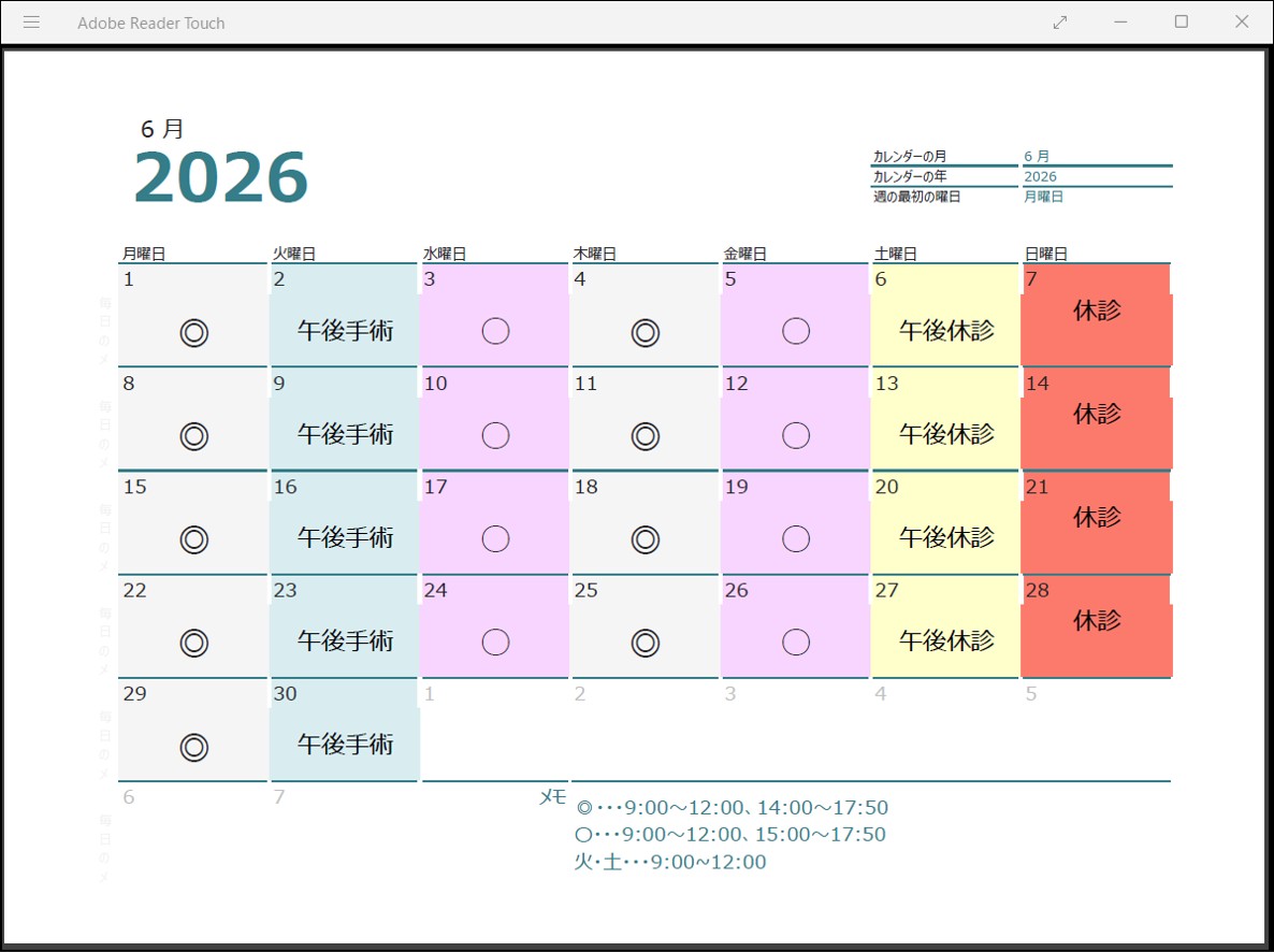 | 午後2:00~5:50 | 手術の為 休診 |