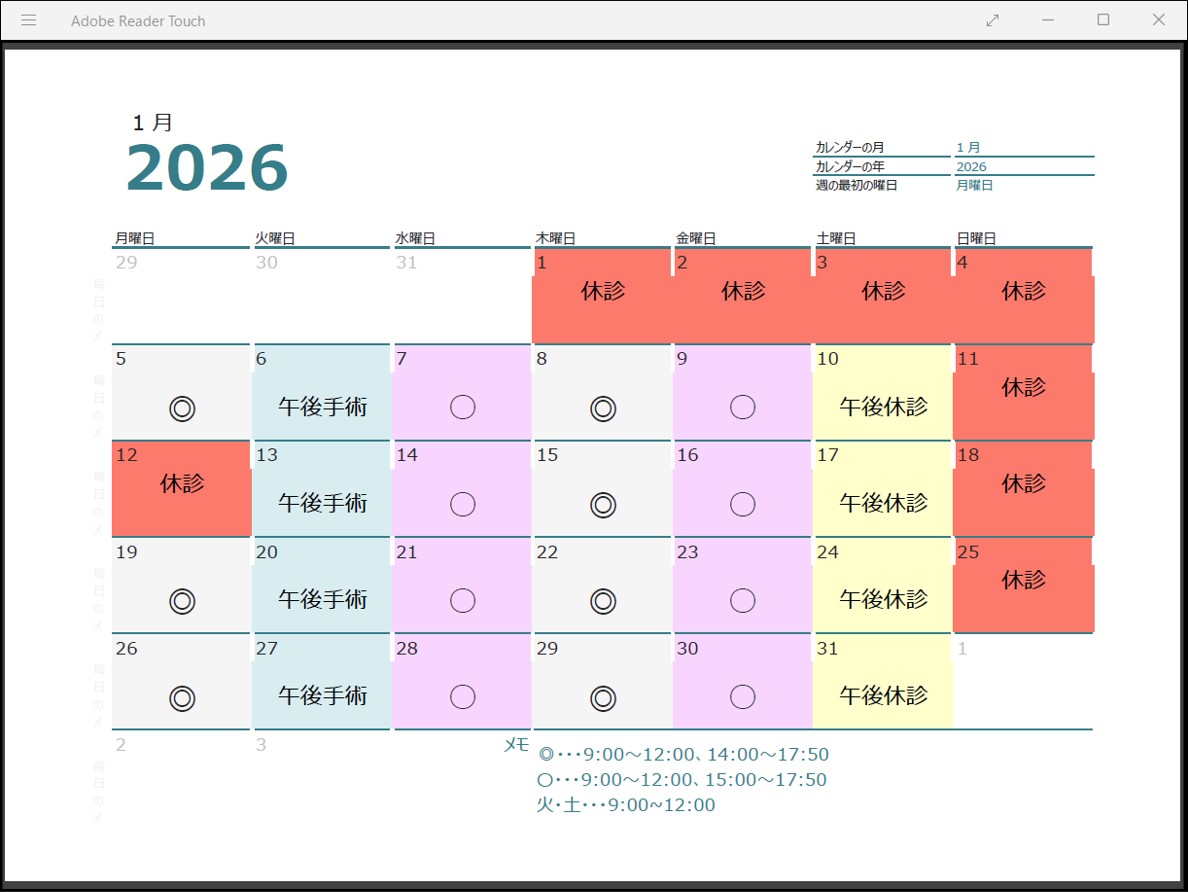 | 午後2:00~5:50 | 手術の為 休診 |