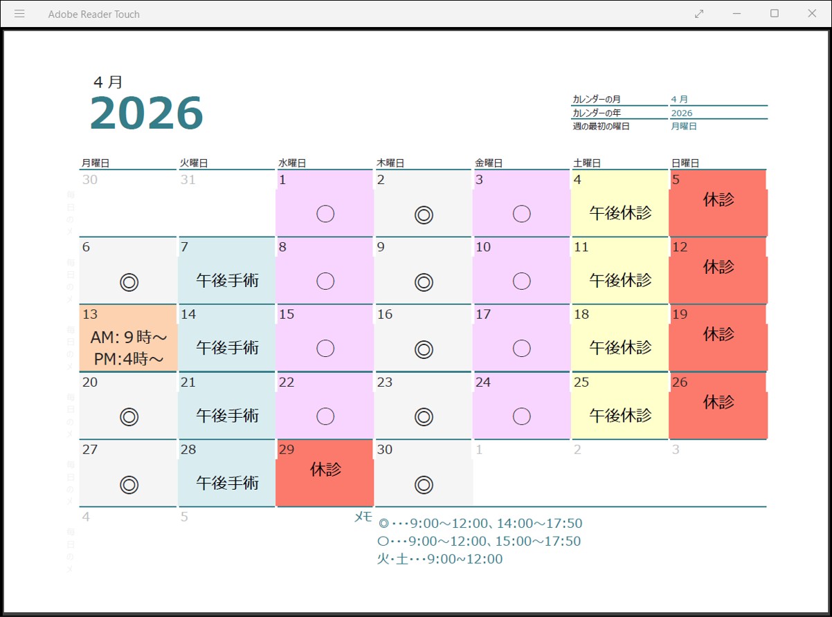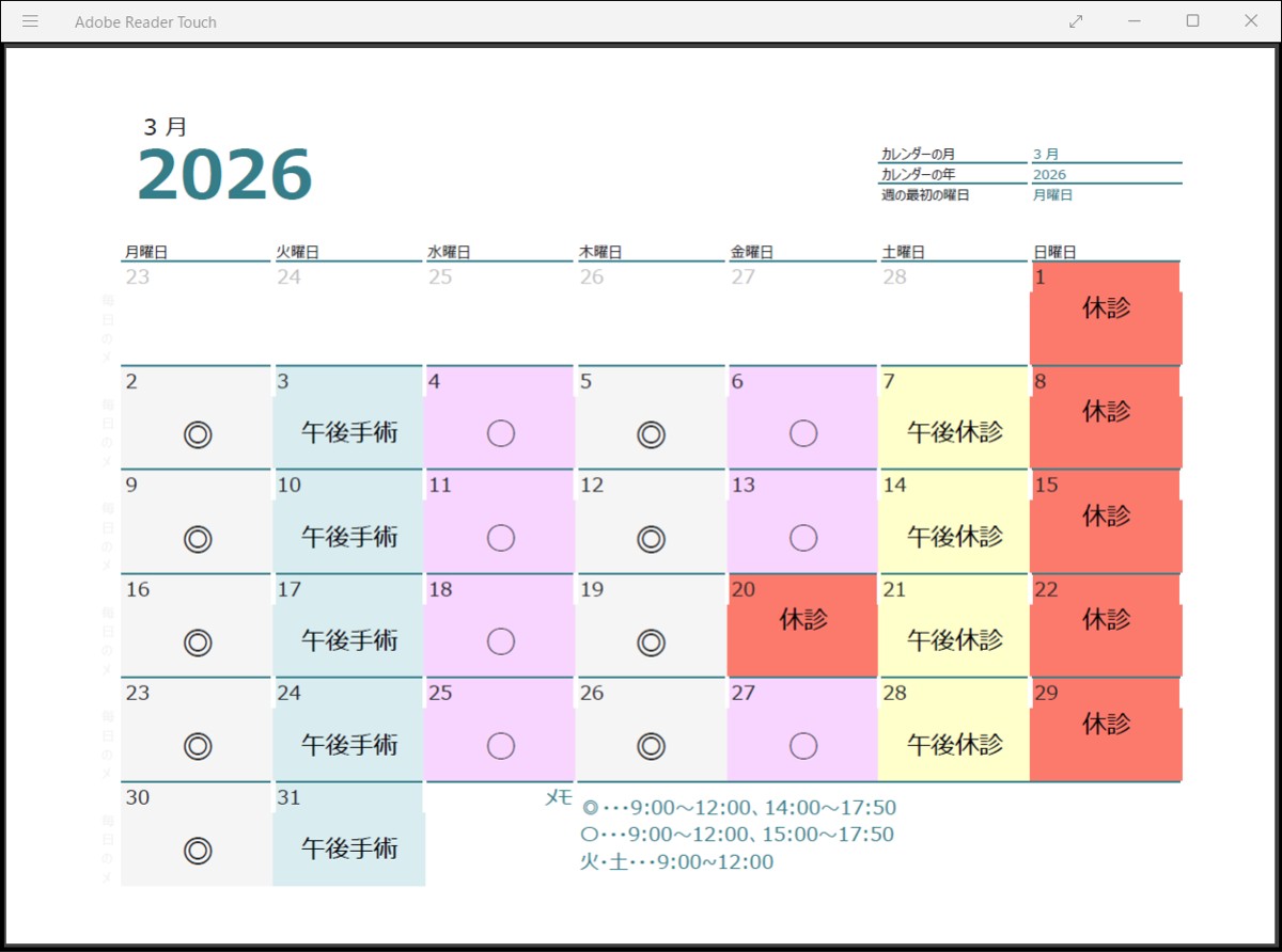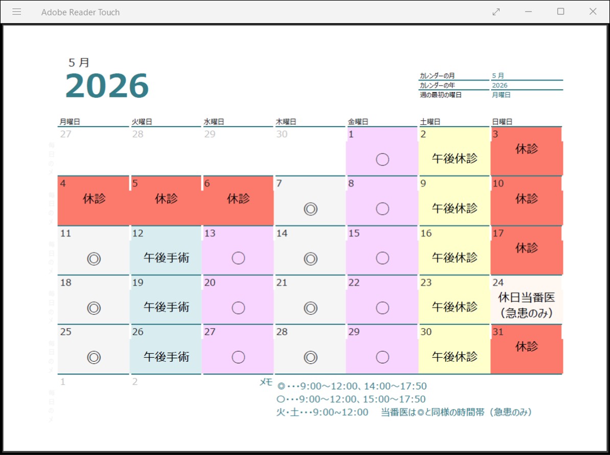 | 午後2:00~5:50 | 手術の為 休診 |